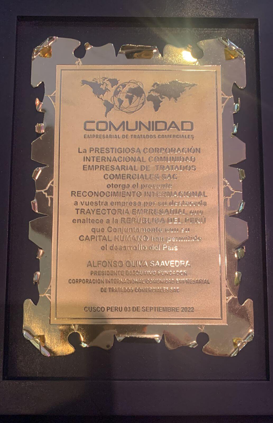 RECONOCIMIENTO INTERNACIONAL POR SU TRAYECTORIA EMPRESARIAL
