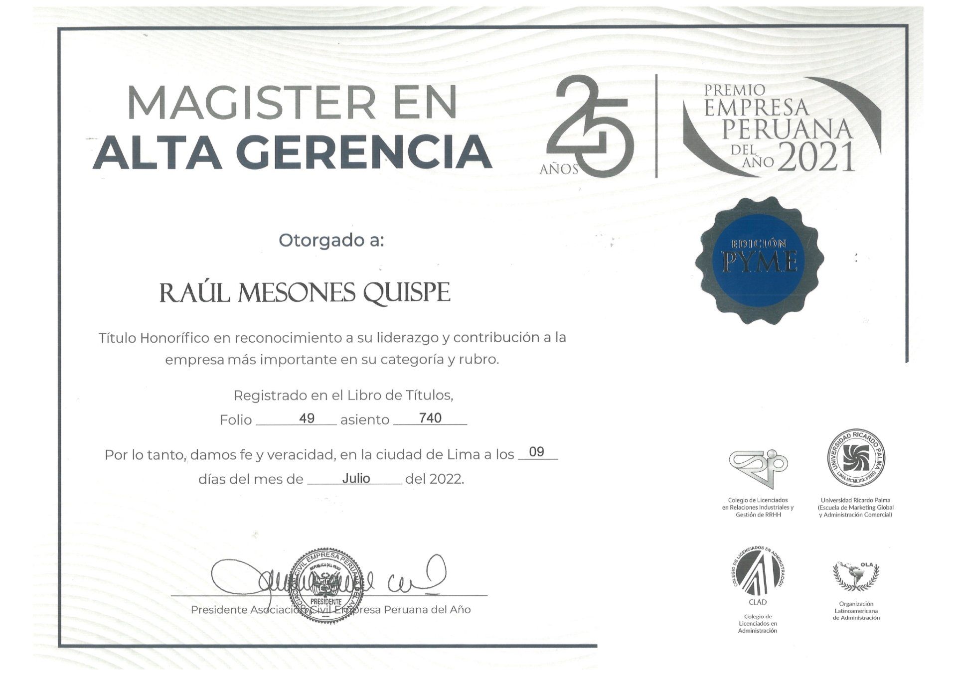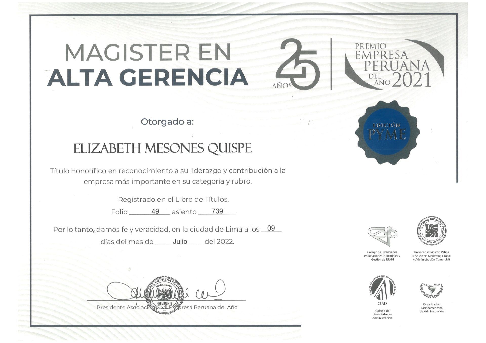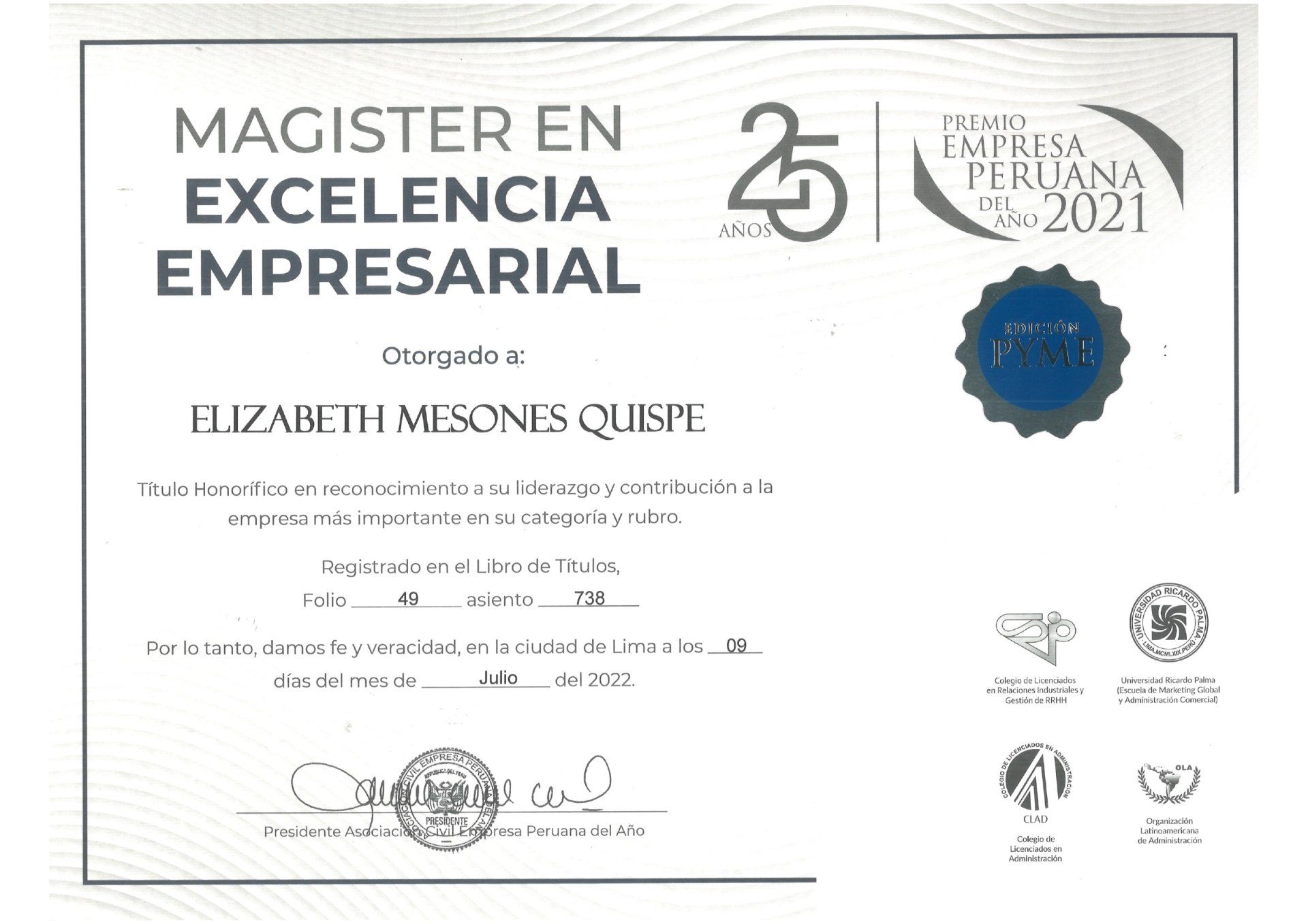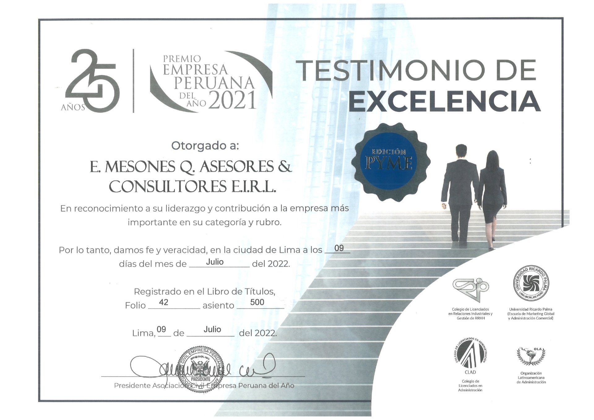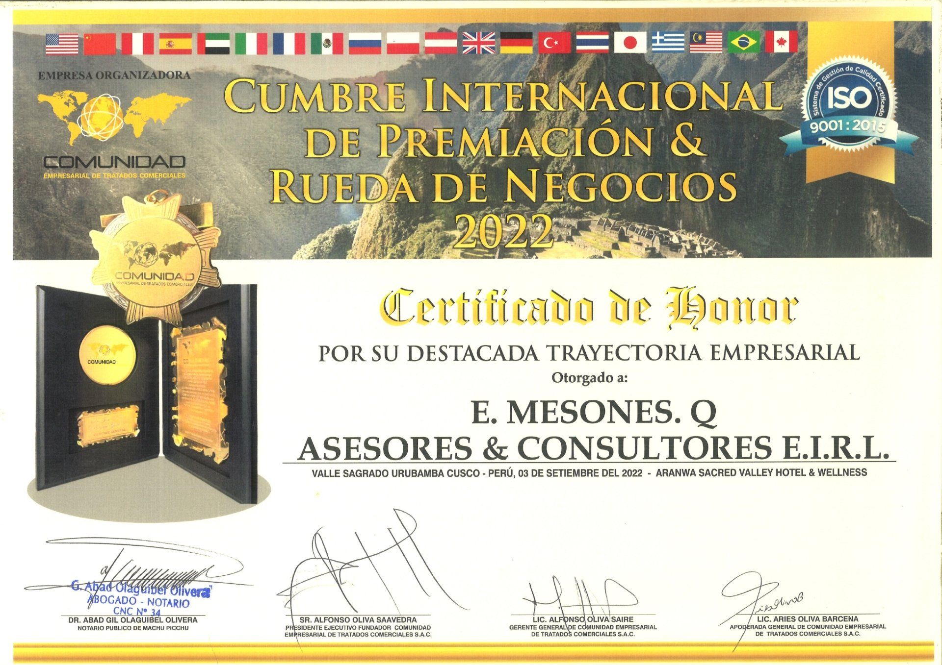 Otorgado a E. Mesones Q. Asesores & Consultores E.I.R.L